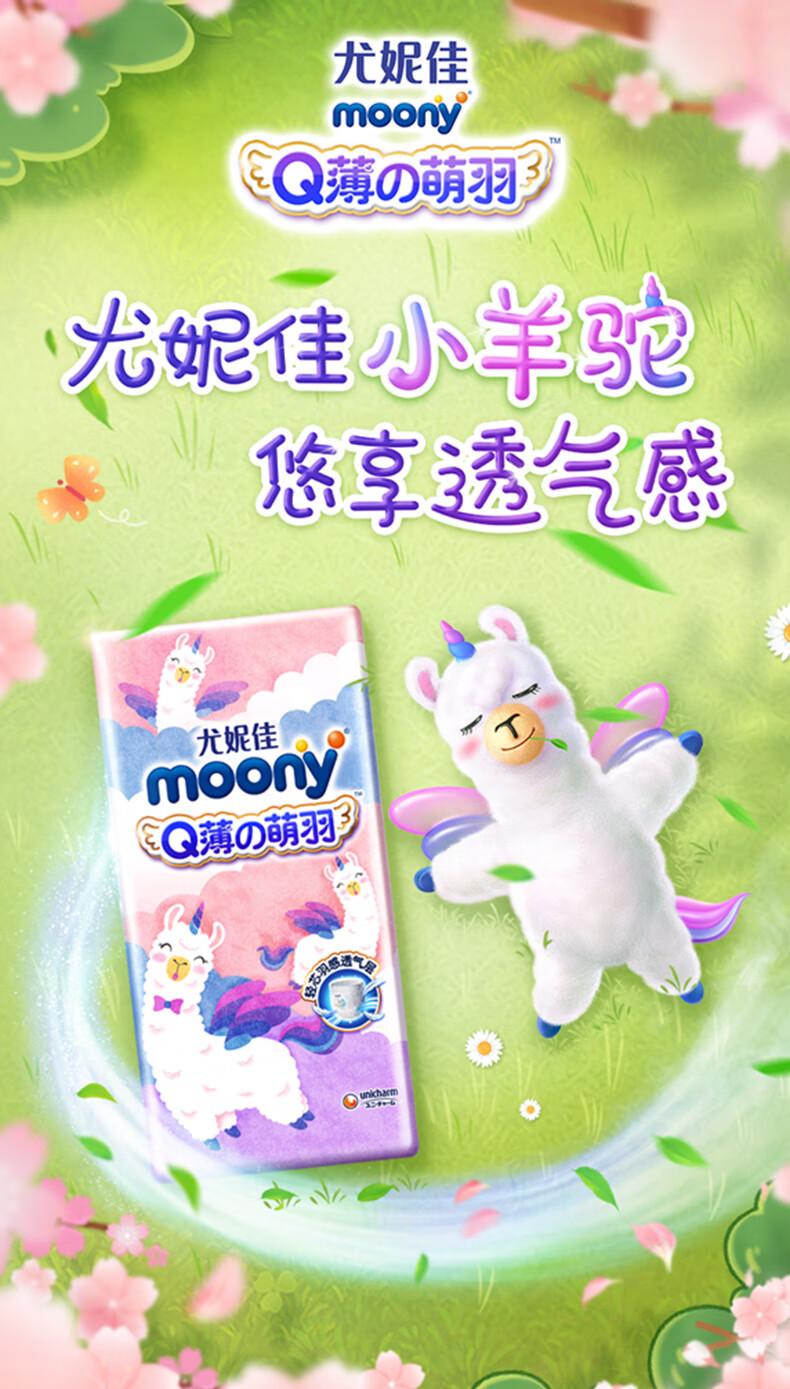 MOONY 尤妮佳Q薄萌羽小羊驼拉拉裤XL36片(12-17kg) 柔软透气轻芯超薄
