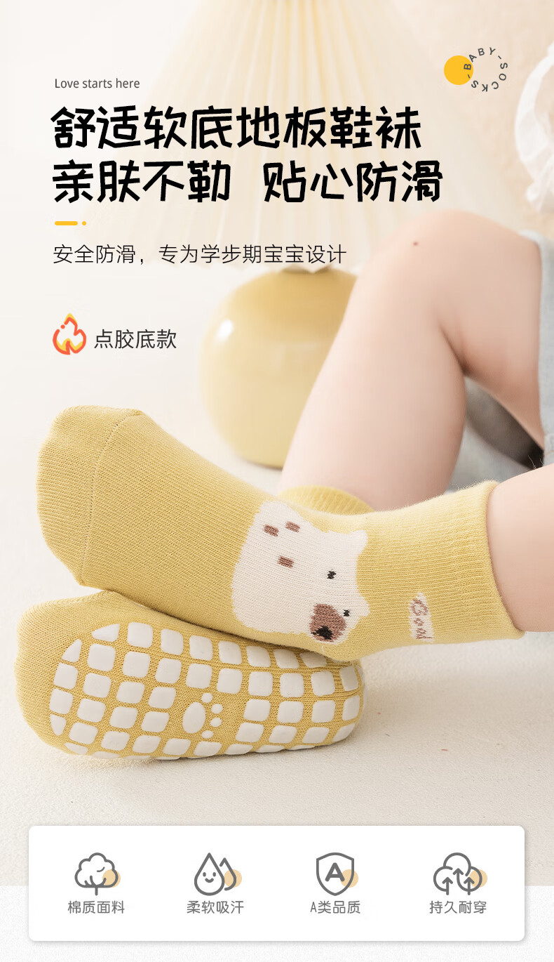 童颜 婴儿袜子室内学步袜宝宝地板袜透气防滑底隔凉早教袜套 1-3岁