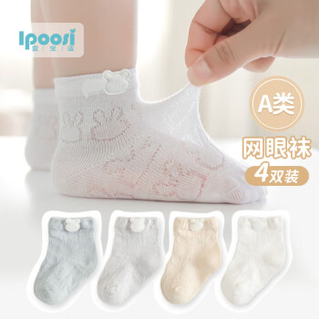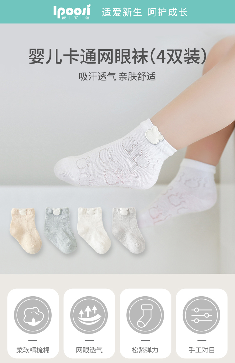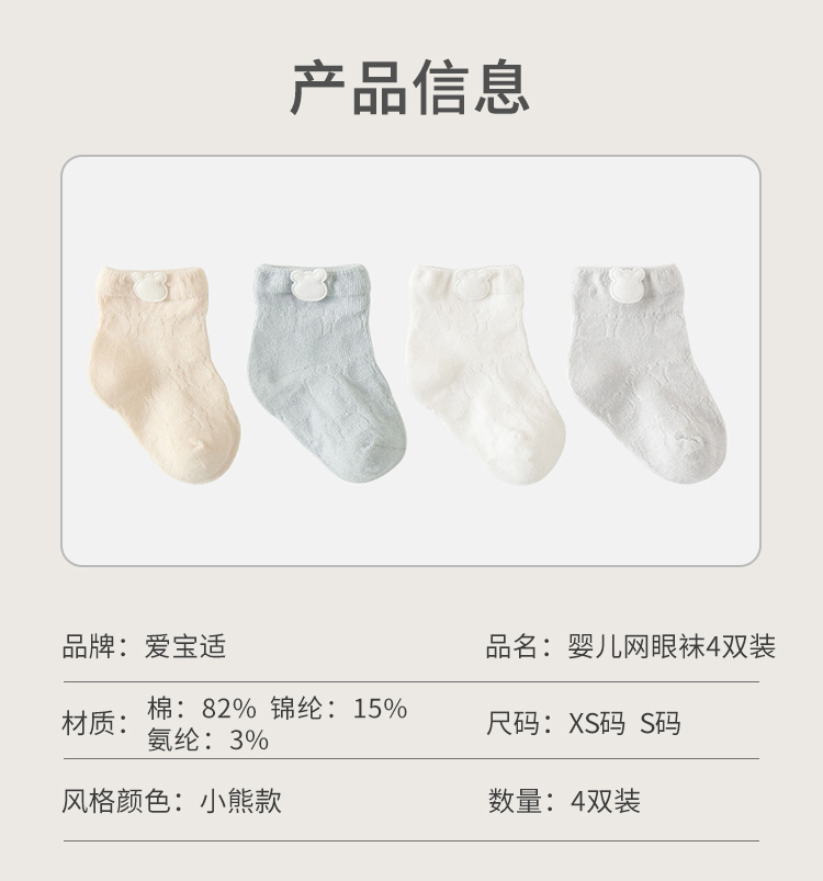 爱宝适 婴儿袜子春夏网眼宝宝袜子透气新生儿袜子4双装小熊款 XS码 S209